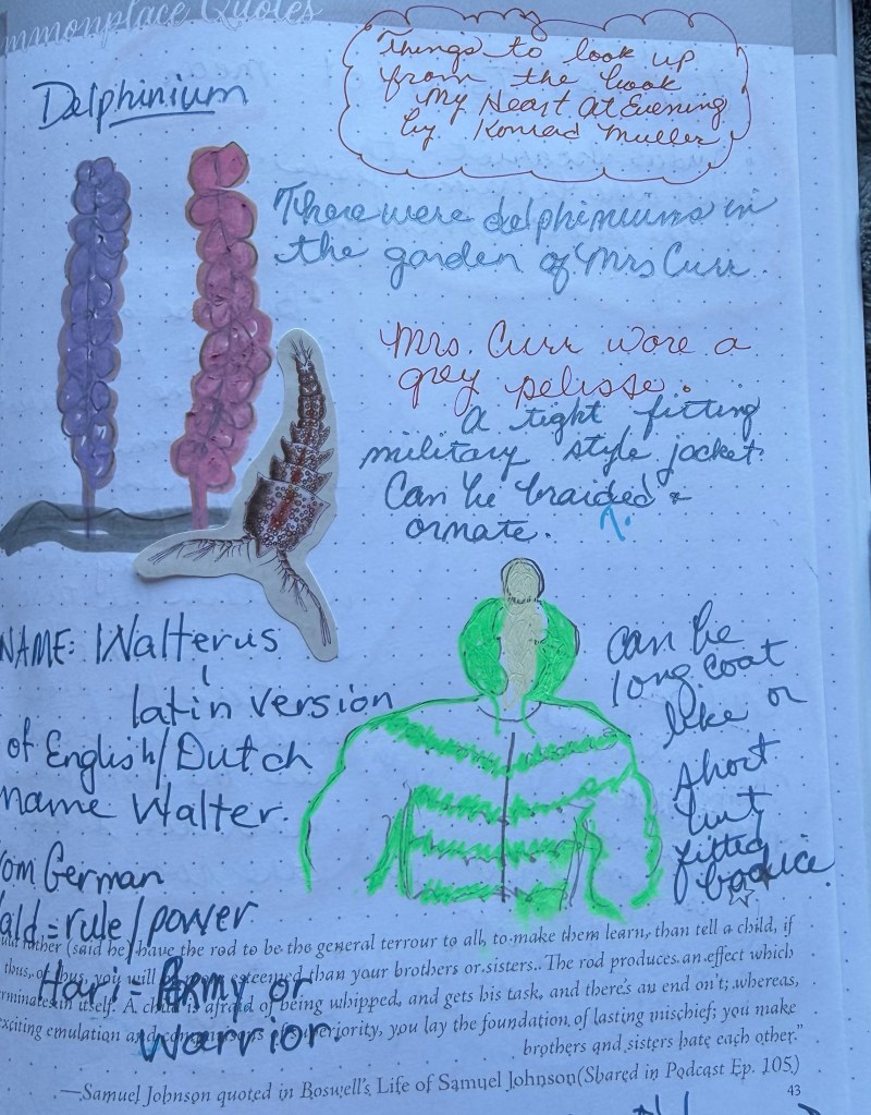 I had a lot of fun looking these terms up and I wrote them in my Commonplace journal and then I illustrated them with my five year old’s drawing skills.