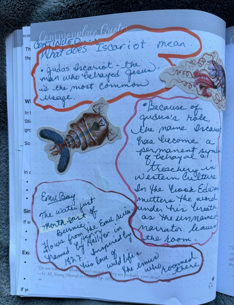 While reading the Henry Heller book I took notes of places in Tasmania I wasn’t sure of location. I had some 1800s clothing vocabulary I didn’t know. There was a quote a man uttered under his breath about another I didn’t know what it meant. I jotted these words/quote down. At the end of my reading session I looked them all up and wrote it in my commonplace journal. I had a lot of fun doing so as I love research and the rabbit holes that follow.