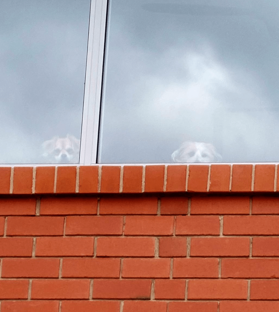 They have figured out one of us is often on the bus. The bus goes by on weekdays every 30 to 40 minutes. When they hear it, they pop up from their bed, look out the window and watch for a few minutes to see if we come walking up the drive. If not I assume they go back to sleep. If we are on it, they follow with their little faces and greet us enthusiastically at the door. No-one is ever happier to see us than our dogs. I snapped this photo with my phone last week as I walked up the driveway.