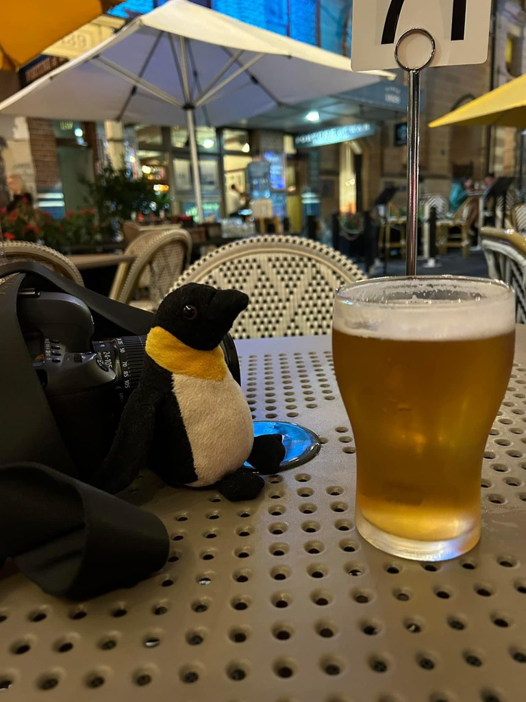 With my friend out of commission or whatever happens on my trips, I can always count on the Penguin for company. Out last evening celebrating our week of surprises.