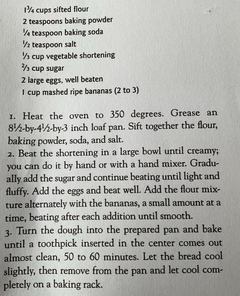 fun this week. I’ll leave you with the delicious banana bread recipe I made today. I substituted 1/4 cup of the flour for drinking chocolate mix. It really added to the flavour.