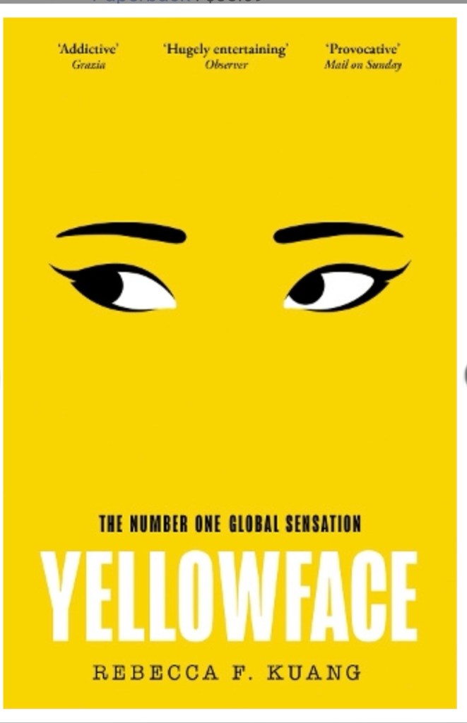 The Audible book I’m listening to is Yellowface by Rebecca F. Kuang. Narrated by Helen Laser.