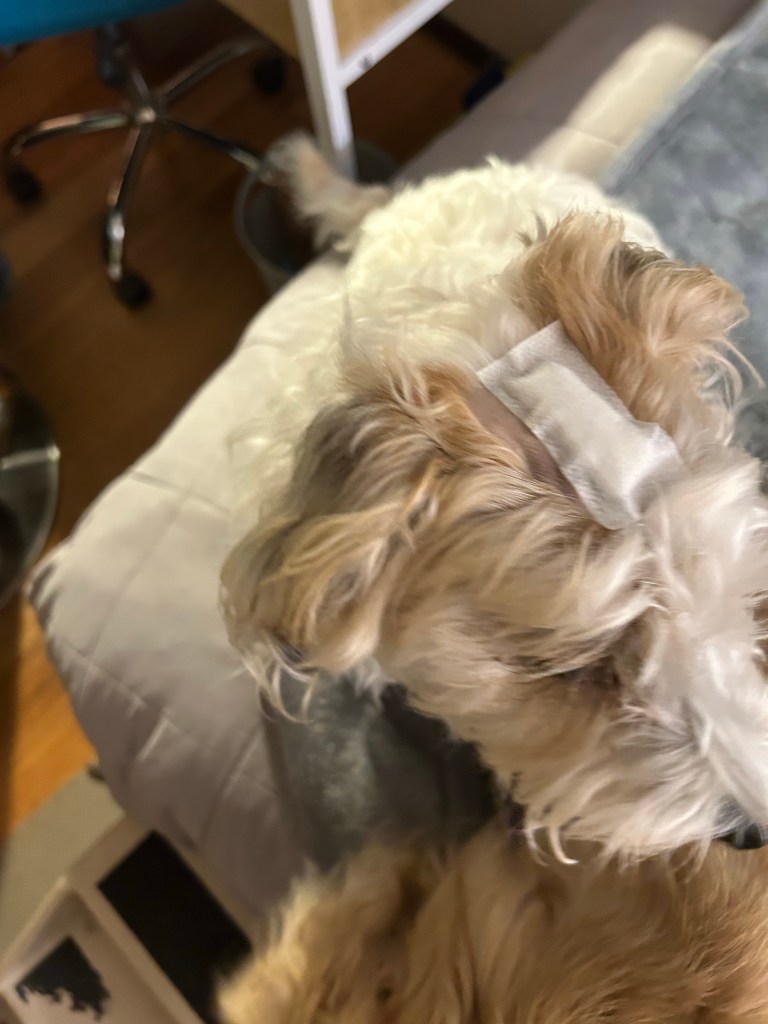 Ollie came home before I went to the dinner and he had a big bandage on his head.