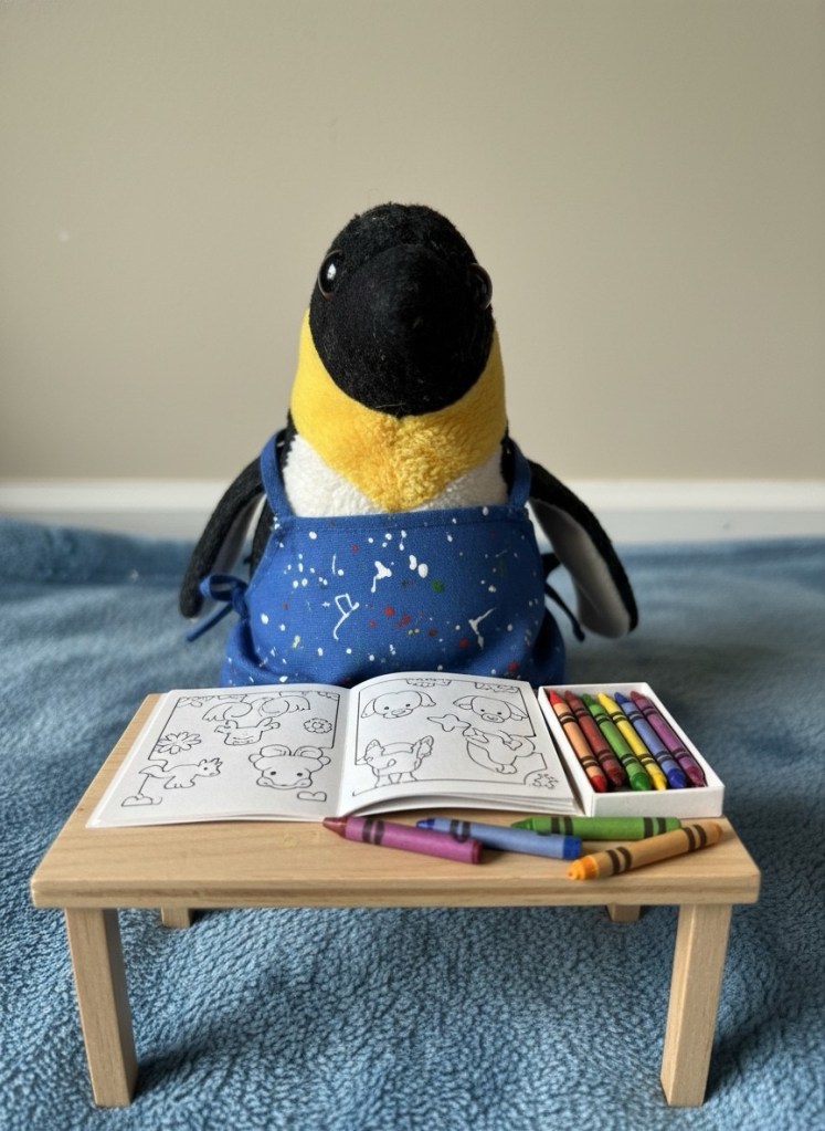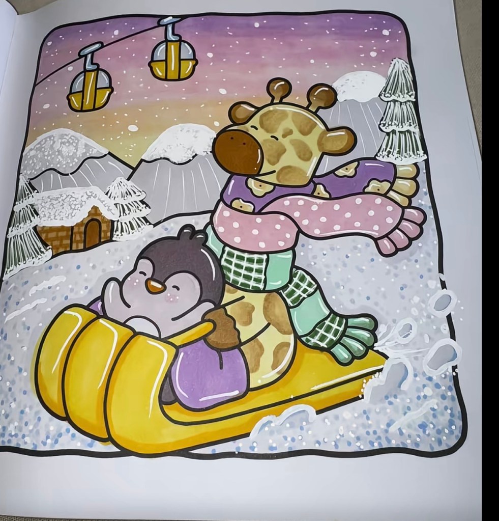 Another three friends and I are doing something really silly soon for an afternoon tea event at one’s home. You are probably familiar with the Cozy Colouring books that are everywhere in stores like Kmart and Big W and all over social media. They are little square books with simplistic pictures of cozy scenes. Bears, cats, etc. People colour them in very creative ways. No more worrying about staying in the lines. It now goes deeper than that. Four of us, me in my 70s, two friends in their 80s and one 92 yr old, are going to sit at a table with our cozy colouring books and many pens, acrylic markers, etc and see what we can share. Looking at spots, stripes, shading, snow flurries or sun beams all while enjoying a glass of sparkling or coffee and cake or all three. We are looking to do things together that make us crack up laughing. This should do it. I’ll have to share the results. (Maybe).