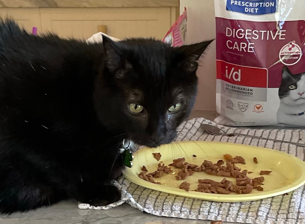 Our big old Grizzy cat who has recently been diagnosed with diabetes is settling into his routine. He sleeps separately from others at night as we test his urine each morning. Then at 4:30 pm he gets his medication. i chose 4:30 as we’re generally home at that time. Too late for lunches or other appointments, too early for night out. The new medication (to Australia) is working so no needles.