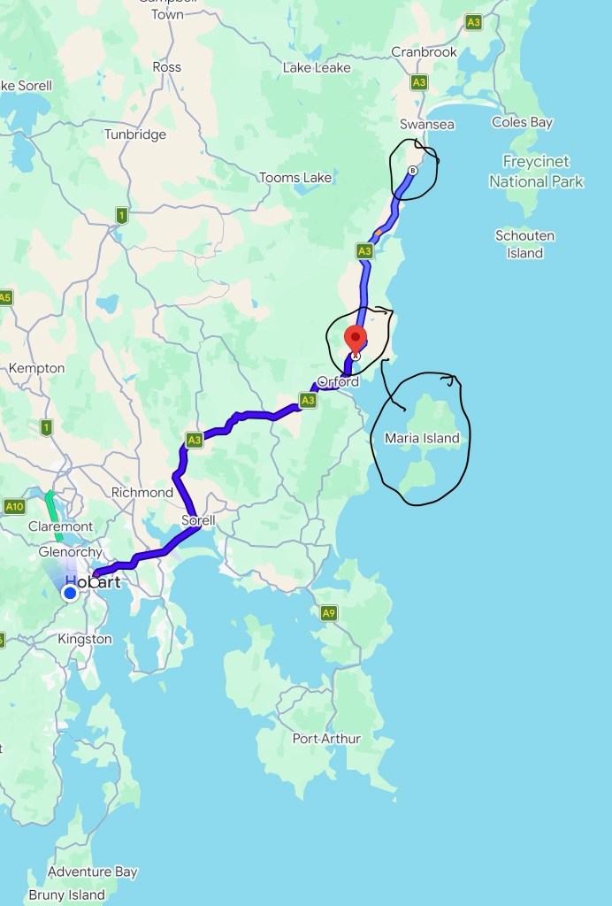 Maria Island is a mountainous island located in the Tasman Sea, off the east coast of Tasmania, Australia. The 115.5-square-kilometre island is entirely occupied by the Maria Island National Park, which includes a marine area of 18.78 square kilometres off the island’s northwest coast. It is a car-free national park. It is renowned for its pristine natural beauty, abundant wildlife (including wombats, kangaroos, and Tasmanian devils), and rich convict history.