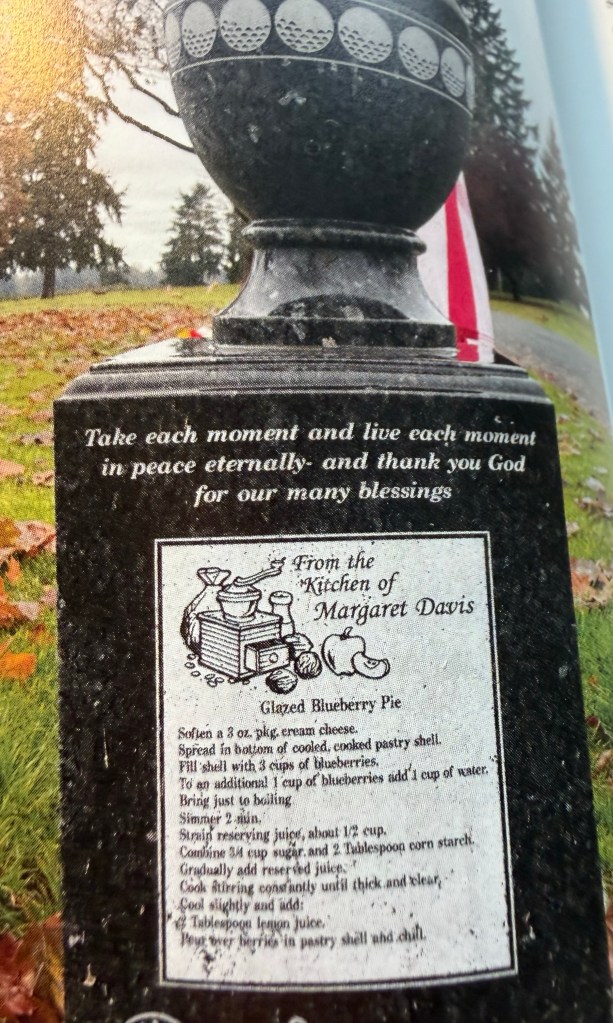 Have any of you ever seen something special on a gravestone? If I do get out and get some gravestone photos I’ll post them up at a future date. I’ll also share what I bake from the book. In the meantime. Enjoy the photos.