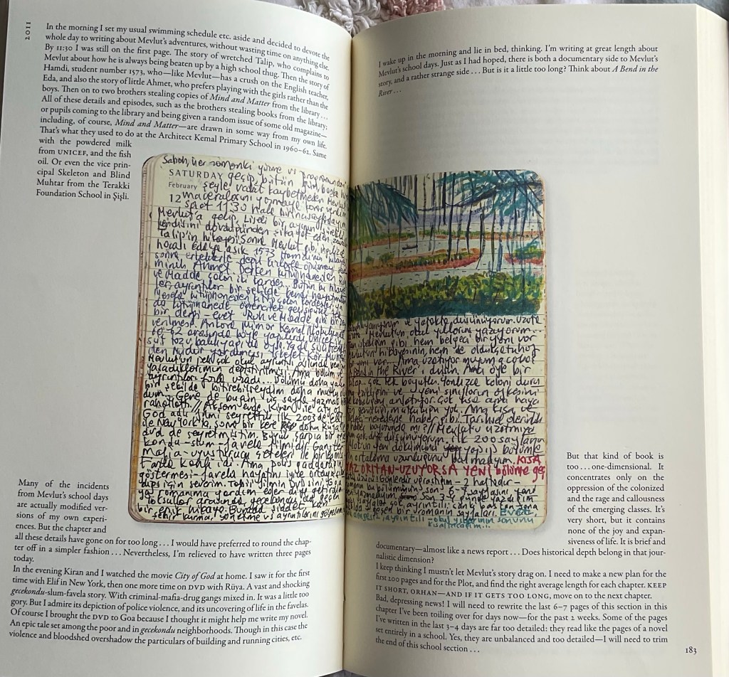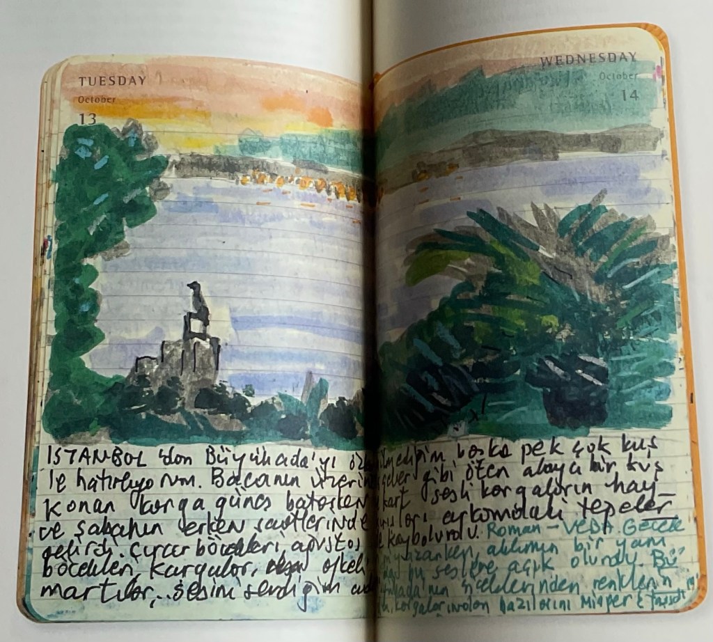 “Memories of Distant Mountains: Illustrated Notebooks, 2008–2022 is a reflective, hybrid book by Turkish author, Orhan Pamuk that blends short prose pieces with his own drawings, watercolours, and notebook pages.
