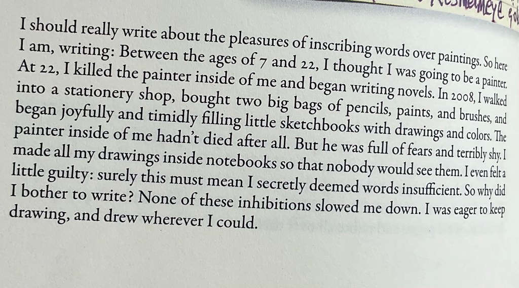 The visual elements—sketches of faces, rooms, streets, and imagined scenes—are not illustrations of the text so much as parallel thoughts, reinforcing the sense that the reader is inside the author’s mind as it wanders.”